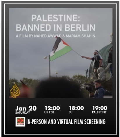 Saturday Jan 27, 2024, 12:00 Noon US EDT; 18:00 Europe; 19:00 Palestine.