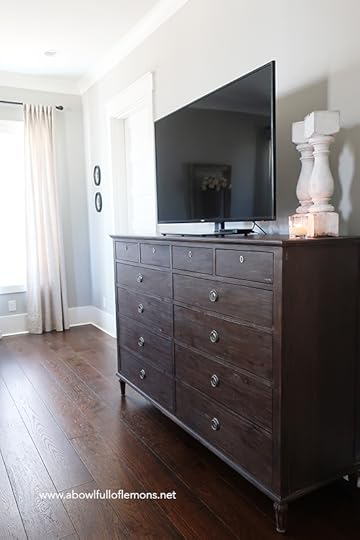 We have a chest of drawers to store living room items. (The chest is from TJ Maxx).