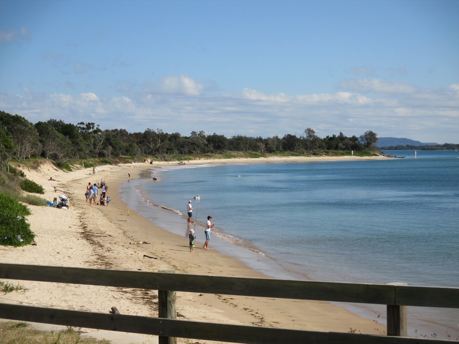 Then it was back on the treadlys and a pedal to Pippi Beach, before wandering around the back streets past the golf club, the uber-cool skate park and past the beautifully treed primary school that held an abundance of birdlife. I could not get over how much bird life there was in Yamba. The village is choir of glorious birdsong. (note the pic next to this is of Whiting Beach... Yamba has 6beaches!)It was now becoming late afternoon so we peddled up to the viewing area of Pelican Island and Rabbit Island and finally around the canal streets of west Yamba with glimpses of Yambas other islands - Freeburn, Sleeper, Palmers and Thorney. Seeing these bushy, enticing isles with sparkling water and sandy fringes had us dreaming of what if we had a boat... maybe we could get a small runabout... oh wouldn't it be lovely to have a little yacht down here.
