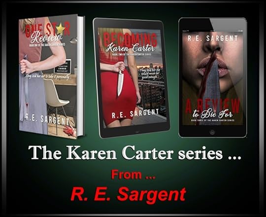 For any brave soul who has put a short story or novel into the public domain for public scrutiny, they’ll well know that feeling of fear-filled excitement as they wait for the reviews to roll in – will their work be met with universal acclaim or be cursed by voices of condemnation, the dreaded 1-star reviews? Now, most authors when confronted by a scathing 1-star review will, quite sensibly, shrug it off and put it out of their mind. Sometimes of course, the review might be so unjustified the author feels compelled to reply online (this rarely turns out well!). But what if the author truly doesn’t take kindly to public criticism and possesses some dubious means by which to confront their reviewer in the real world? The Karen Carter series by R.E. Sargent tackles this…