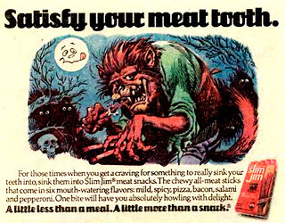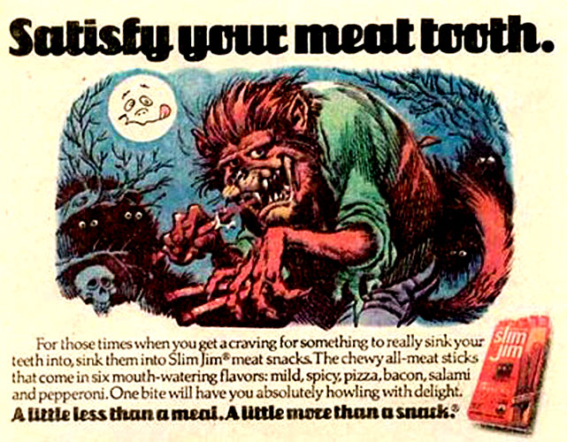 Jack Davis drew some great monsters including these two Slim Jim ads which I remember fondly from my youth.