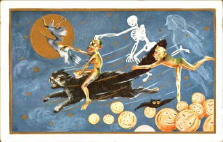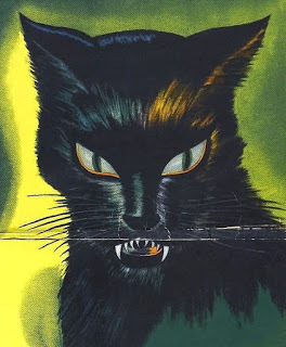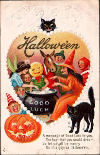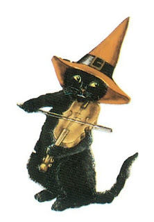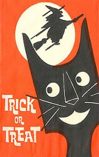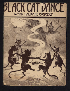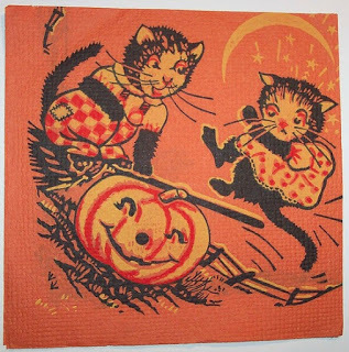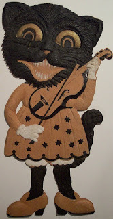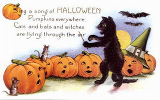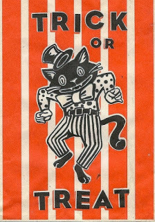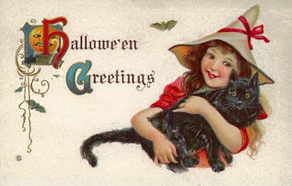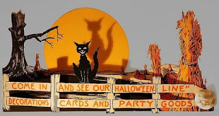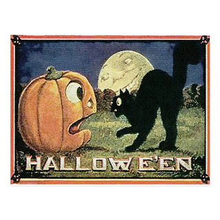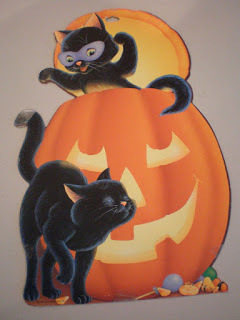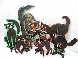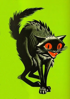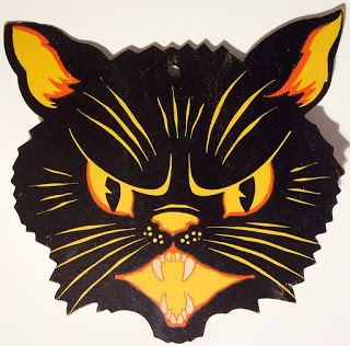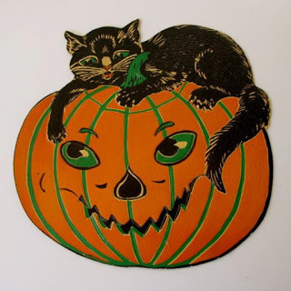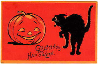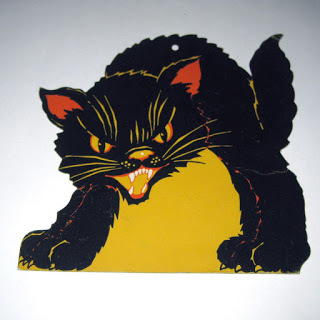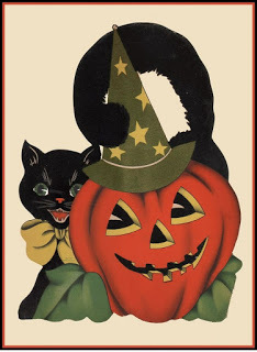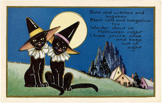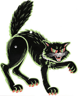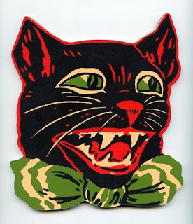 Among the many traditional trappings of Halloween, along with witches, skeletons, bats, Jack O'Lanterns, ghosts, and spiders, is the black cat. Halloween wouldn't be Halloween without them. Here are a bunch of, mostly, vintage images of Halloween black cats I've collected over the years.