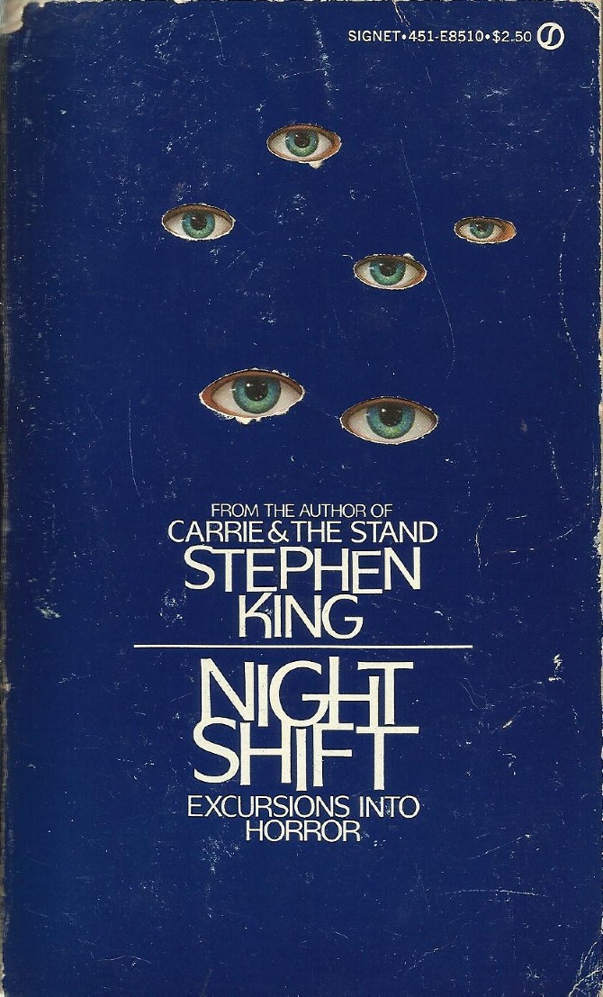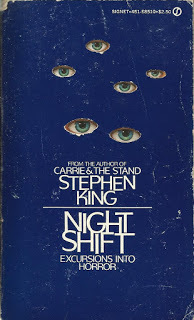 My piece is 3-D cut paper and obviously based on the initial paperback cover of Night Shift with art by Don Brautigam (shown below with it's die cut outer cover).