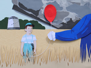 The boy in the piece is actually based on a photograph of Stephen King as a boy and seemed like the perfect trusting, innocent little boy unaware of the horrors of the world (or those he'd later create).