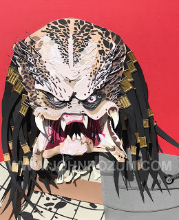 "The Predator" is the 3-D cut paper piece I made for the "30 Years Later" show, celebrating the films of 1987, which is now on exhibit at Gallery 1988(West) through August 12, 2017. Visit in person, if you can.
