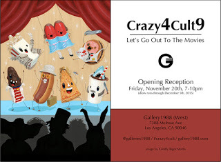 All the artwork for the Crazy4Cult9 show, now at Gallery 1988 (West) is available for viewing/sale at the Gallery 1988 website. Take a look.