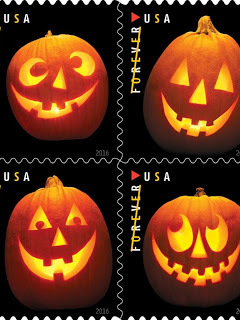 Finally coming this Fall to a Post Office near you are a set of four different jack o'lanterns for Halloween. Hopefully this will be the start of an annual stamp to celebrate Halloween, and not just a one time thing.