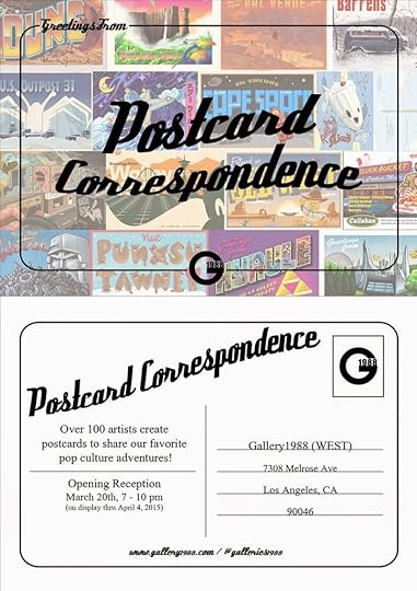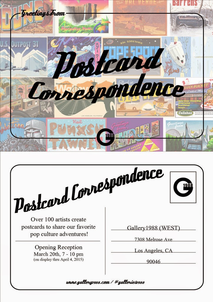 "Postcard Correspondence" opens at Gallery 1988: West, 7308 Melrose Avenue, Los Angeles, CA 90046, on Friday, March 20, 2015 from 7:00 - 10:00 PM and runs through April 4, 2015.