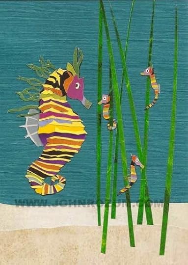 I created the above piece from cut paper for the "Postcard Correspondence" show which opens at Gallery 1988 this Friday. The image depicts the Crayon Ponyfish from The Aquatic Life of Steve Zissou and is meant to be a souvenir that could be purchased at the gift shop of the Zissou Society Aquarium.