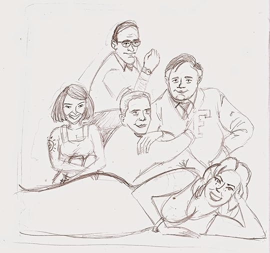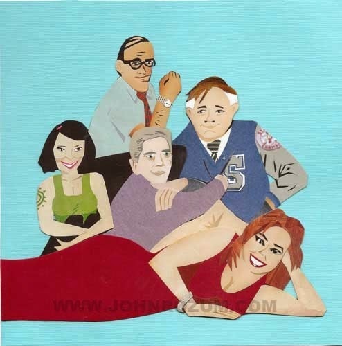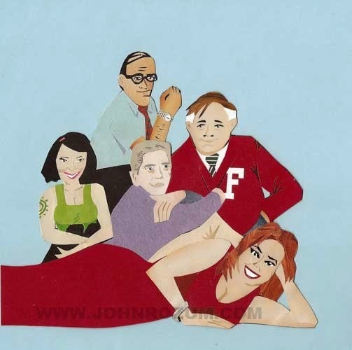 Today marks the 30th Anniversary of the classic high school movie, The Breakfast Club. To mark the occassion I thought I'd share this piece I did for "The Road to Shermer" the John Hughes tribute show at Gallery 1988 a few years back. This piece was called "25th High School Reunion" and showed what I thought the characters from The Breakfast Club would look like twenty five years later. I didn't go about this the obvious way. First I determined what sort of careers and lives they'd have 25 years after the movie, then I age progressed the characters based on those decisions. I never went and looked at photos of the actors as older adults.