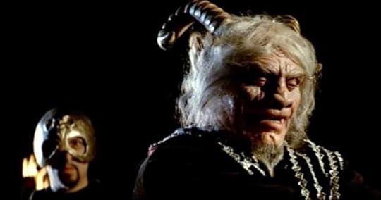 I decided it was time to revisit a film from my childhood. More often than not this turns out to be a terrible mistake, but I actually really liked The Devil's Rain (1975), probably more than I did as a kid. Yes, there are some hoaky bits, but the pace of this movie is phenomenal. It really throws you into the story with no preparation and no explanation for anything going on, but it's never hard to grasp onto. It even throws some startling imagery on the screen really quickly, with the figure of a melting, eyeless man disolving in the rain. The eyeless people and melting flesh is a recurring visual motif in this film which features rather nice make-up effects and some decent special effects depicting the souls of Corbis' converts within a large windowed jar. It's not a classic, but it's certainly a lot of fun.