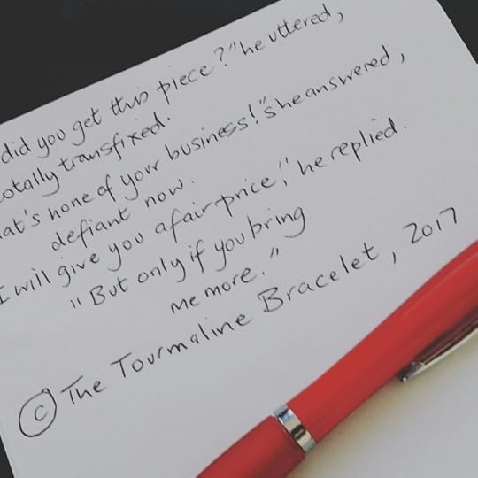 WIP. The Tourmaline Bracelet has been drafted, redrafted and proofread!