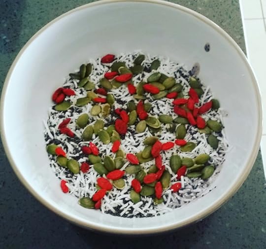 So everytime I go shopping Jess has to come with me. She scours the markets for fresh fruits and seeds and nuts with exotic names such as Goji and Acai seeds. I had never heard of most of them until recently, but now am an expert on walnuts, pumpkin seeds and coconut flakes….