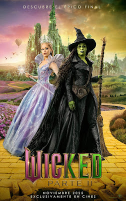 Cada vez tengo más claro que esta segunda parte es mucho mejor que la primera, y que los elementos que la componen están más sujetos y son más interesantes. Dos monumentales actrices, ahora sí, se dan cita en el epílogo de una historia que lo deja todo muy bien atado. Un buen número de nominaciones la esperan. Esta semana hemos visto: WICKED: PARTE II.