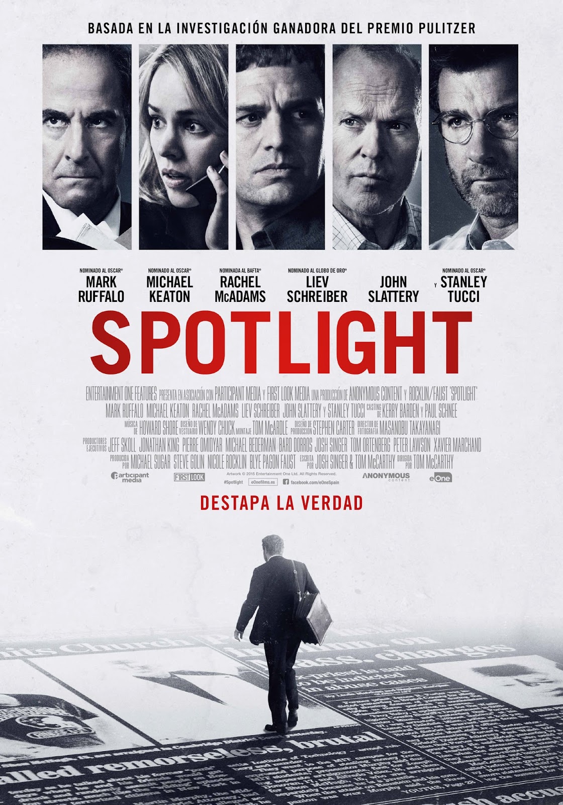 Película que, imagino, se estará paseando mucho por las facultades de periodismo de todas las universidades del mundo, y con gran acierto si es así. Oscar a mejor película, hablamos de un peso pesado, pues, que narra la profesionalidad con la que el periódico de Boston, sin dejarse llevar por el sensacionalismo, sacó a la luz los trapos sucios de la Iglesia Católica, gran protegida y causante de muchas piedras en el camino para su equipo, que pese a todo no se rindió. Una película que, es muy de agradecer, se mueve sin juzgar ni lanzar culpas, sino que muestra e informa, justo lo que cualquier periodista que se precie de serlo tendría que ser. Tal cual sucedió. Sin embargo, y sabiendo cómo está la televisión y los medios de comunicación, ¿quién puede ser imparcial? Que comience el debate.