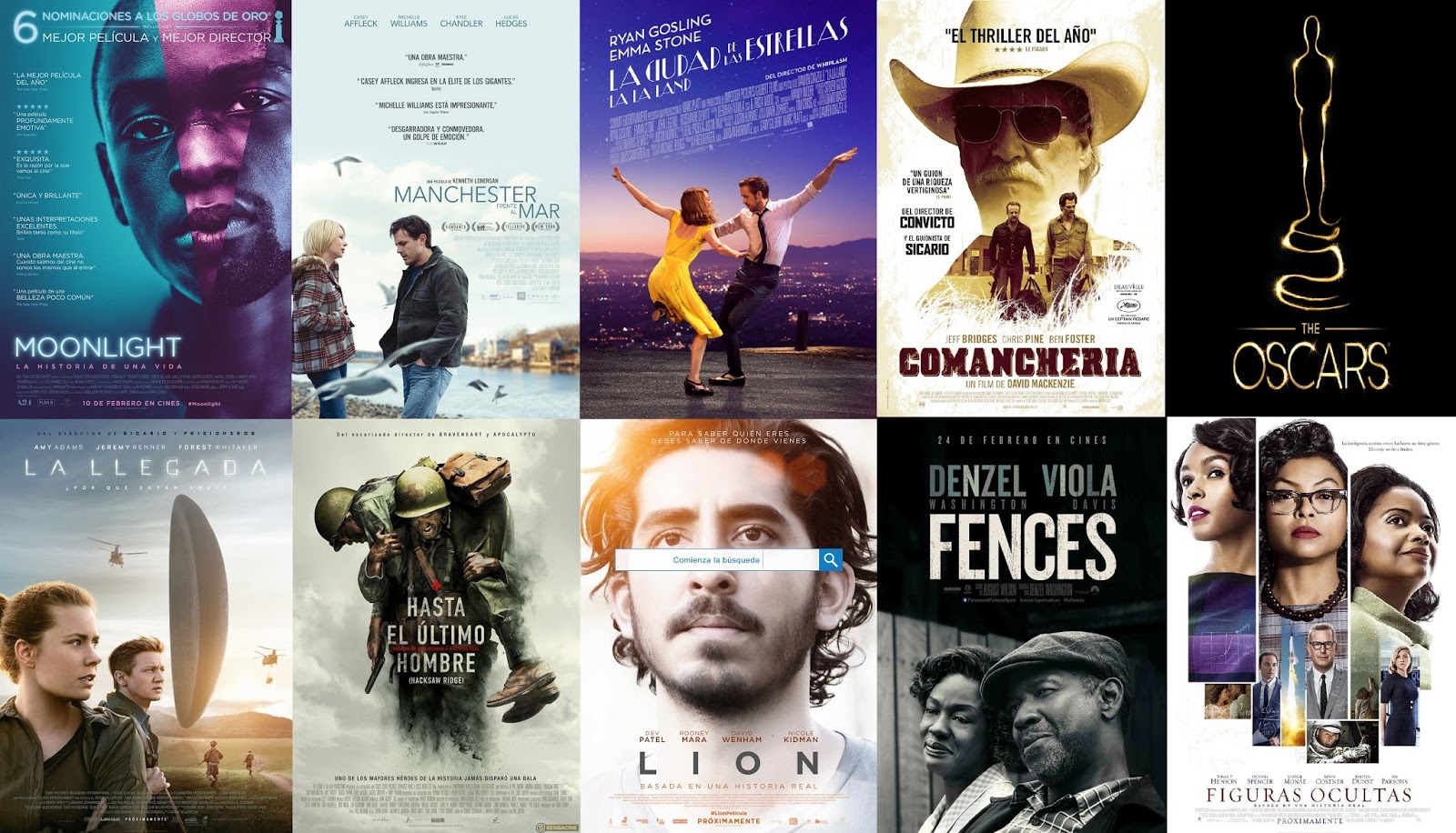 MoonlightManchester frente al marLa La LandComancheríaLa llegadaHasta el último hombreLionFencesFiguras ocultas