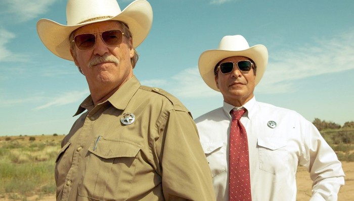 Una de las mejores escenas de la película. Comprobaremos que los tejanos son únicosChris Pine quizás el que menos brille de los tres, pues su personaje es serio, centrado, la mente que piensa y controla a un hermano con el que ha que batallar, una fiera salvaje descontrolada, todo un caramelo para Ben Foster, que lógicamente no puede hacer otra cosa que brillar y comerse a su compañero. No obstante, Chris Pine se muestras solvente, pero es que Ben Foster lo hace genial. Por otra parte, tenemos a un Jeff Bridges que encaja como anillo al dedo en ese ranger de Texas viudo, cascarrabias y a punto de jubilarse, pero trabajando en su último caso junto a su compañero de raza india (Gil Birmingham).