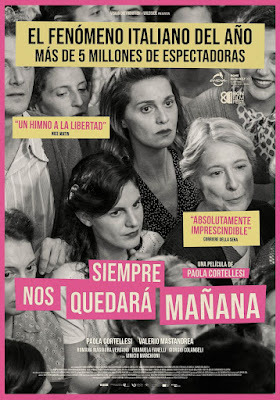 Brutal película que trata sobre la violencia de género tras la posguerra italiana, contada de una manera interesante, para no violentar todavía más lo que ya de por sí es violencia. Feminista es un rato. Esta semana hemos visto: SIEMPRE NOS QUEDARÁ MAÑANA.