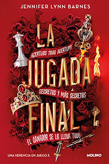 La jugada final es la tercera ¿y última? entrega de Una herencia en juego (The Inheritance Games) escrita por Jennifer Lynn Barnes, quien retoma lo sucedido en el final de la segunda parte y nos coloca a Avery en un último juego en el que esta vez se juegan más que una herencia, sino la vida y la seguridad de las personas de su entorno, en concreto una muy importante para ella. A lo largo de la trama se irán conociendo detalles sobre los hermanos Hawthorne, se pulirán los triángulos amorosos, se destaparán traiciones y giros de guion que harán más amena la lectura. En cualquier caso, tengo la impresión de que se ha querido aprovechar el tirón de la saga y esta última novela estira demasiado el chicle. Ya sabemos que la mansión Hawthorne da para mucho, pero hay pistas y pruebas que son una verdadera irrealidad, cosa que nos saca algo de la lectura.