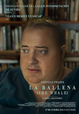 La Ballena está nominada a mejor maquillaje y peluquería, por supuesto, pero también a mejor actriz secundaria (Hong Chau) y evidentemente a mejor actor. Brendan Fraser no solo tiene asegurada la estatuilla, si es que Hollywood entiende de esto, sino que alcanza el olimpo de las mejores interpretaciones de siempre. Enfundado en un cuerpo prostético de 300 kilos y ayudado en rodaje por 6 personas para moverse, el personaje que construye destroza al espectador con su capacidad de autodestrucción y a la vez de conmovernos por su humanidad. Refleja el gran problema de la obesidad, que es de la sociedad que juzga y apunta con el dedo, y nos deja con una película de redención, de fracasos continuos y de lucha inagotable hasta el final. Es un filme incómodo, de los que hay que ver en plenitud o logrará derrumbarnos, al que vale la pena abandonarse, al margen de las incorporaciones religiosas (Ty Simpkins) que alargan el conjunto y no merecen especialmente la pena. Mencionar el trabajo también de la joven Sadie Sink de Stranger Things, que apunta maneras.