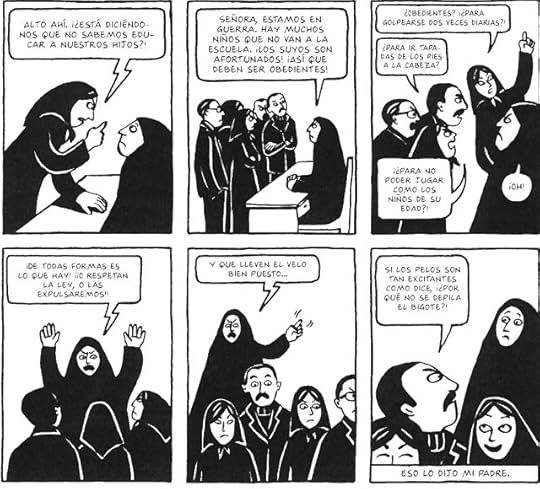 Persépolis es una novela gráfica dura, no se deja nada en el tintero y, amparándose en una dibujo fácil, ameno y divertido, nos golpea una vez tras otra con sus reflexiones y el reflejo de una sociedad que los ojos de una pequeña Marjane diseccionan. Se lee en un suspiro, porque te atrapa, te hipnotiza y te hace seguir avanzando. Además, existe película y pienso verla, lógicamente, pues es altamente educativa. A partir de aquí, tenemos cabida para todo tipo de reflexiones y, a buen seguro, no es una historia que nos dejará indiferentes. No explicaré nada que no haya dicho nadie ya, no hay más que leer las reseñas tan positivas que tiene y, desde luego, no se ha ganado el título de clásico imprescindible porque sí.