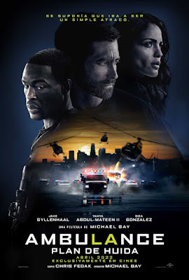 Ambulance está dirigida por Michael Bay, y esto es fácilmente reconocible porque en el minutos dos suele saltar un coche por los aires en forma de fuegos artificiales. Una vez comienza, es un no parar de más de dos horas que te dejan, literalmente, agotado. Y no en el buen sentido precisamente. El caso es que un par de hermanos, no de sangre (Jake Gyllenhaal y YÑahya Abdul-Mateen II) dan un golpe en el banco porque, bueno, se levantan y piensan que les saldrá bien. El caso es que sale mal, obviamente, y ante el despropósito de dar vueltas y correr de una lado hacia otro roban una ambulancia (Eiza Gonzalez). Con ella se dedicarán a darle vueltas a Los Ángeles a la nada desdeñable velocidad de 30km/h mientras helicópteros, Swat, FBI, DEA, CIA, NASA y GEOS los persiguen mientras aprovechan para operar a pecho abierto a un policía que llevan a bordo. Lo que importa aquí es que el plano a cámara lenta de turno salga bien, como cuando Gyllenhaal se baja sin ton ni son a dispararle a dos helicópteros y vuelve a subir a la ambulancia para seguir disparando... ¡mientras se queja de que le disparan! De locos.