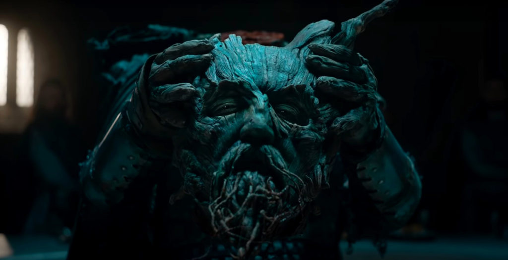The green knight etá dirigida por David Lowery y carga sobre Dev Patel, nuestro Sir Gawain, el protagonismo del filme. Con un rey Arturo y Ginebra (Sean Harris y Kate Dickie) sombríos y enfermizos, en celebración hasta que el caballero verde irrumpe en la sala y reta a todos los caballeros a herirle con la espada, de tal forma que en un año, ese caballero recibirá el mismo dolor que le ha infligido. El valiente no es otro que Sir Gawain, quien le corta la cabeza y, atónito, ve cómo este se levanta y se marcha, citándolo en un año en un lugar concreto para recibir el mismo golpe. Un año después, emprenderá el camino hacia su destino. Con ese peculiar comienzo, quizás algo falto de ritmo y parco en palabras, comienza una película con una gran fotografía pero carente de ritmo.