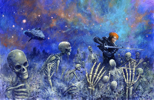 Autor: Tamsyn Muir es la autora neozelandesa que ha revolucionado la literatura de género con su Trilogía de la Tumba Sellada (Gideon la Novena, Harrow la Novena y Alecto la Novena). En ella presenta un brillante sistema solar de duelos con espada, politiqueo despiadado y nigromantes lesbianas que ha sorprendido a la literatura de género internacional con una épica y emocionante historia de ciencia ficción fantástica que ha sido ampliamente aplaudida por el público y la crítica. Gideon la Novena ha sido galardonado con el Premio Locus 2020 al mejor debut y ha sido seleccionada como finalista de los premios Hugo, Nebula y World Fantasy a la mejor novela. RESEÑAGideon the ninth ha sido una grata aparición en los premios de este último año por su frescura y originalidad, sobre todo. Nos habla de una nigromante y de su caballera, en este caso. Dos personajes femeninos particularmente potentes con una relación díficil, por decirlo de alguna manera. Ambas se aguantan y se odian a partes iguales, pero pronto verán cómo se complementan también. En esas están cuando Gideon, la protagonista, decide huir de su planeta para no volver jamás. Sin embargo, verá sus esperanzas truncadas y saldrá de allí, pero en compañía de Harrowhark Nonagesimus, la nigromante de la Novena Casa, pues el Emperador ha convocado a todos los herederos para enfrentarse a un examen a vida o muerte en el que lograrán ascender y, por ende, obtener la inmortalidad. Como imaginaréis, la aventura estará plagada de personajes de todas las Casas, de la primera a la novena, con sus nigromantes y caballeros por igual, cada uno con sus propias características y poderes.