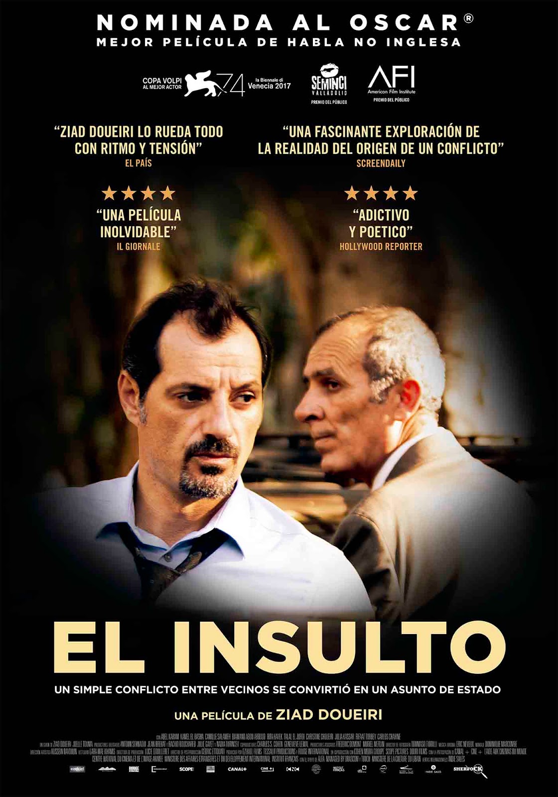 Nominada a mejor película extranjera en los Oscars, y llegando desde el Líbano, se nos presenta un conflicto entre palestinos y cristianos libaneses que se desata por una simple falta de respeto. El conflicto tomará dimensión nacional y político-social que mantendrá el interés del espectador de principio a fin. Esta semana hemos visto: EL INSULTO.