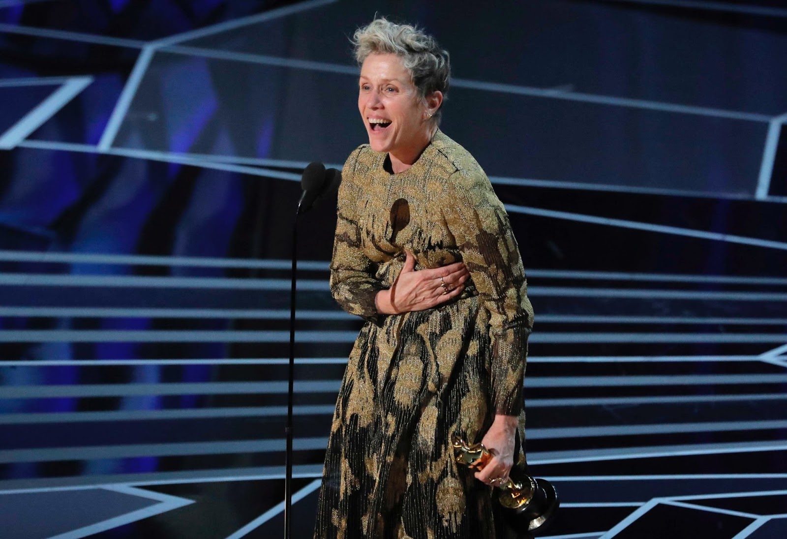 Jodie Foster y Jennifer Lawrence, que está impresionante, presentan el Oscar a mejor actriz, que lógicamente recae en Frances McDormand por su increíble papel en