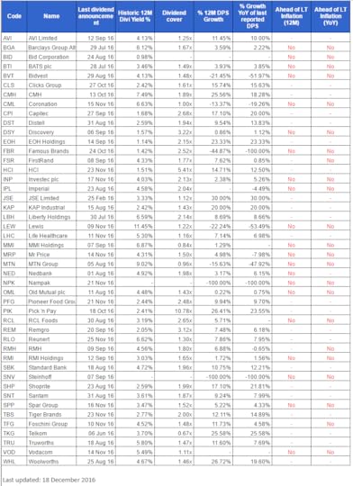 Merry Christmas to all who celebrate Christmas. Here is this week’s table. I have added a couple of companies and put a long-term growth number instead of the two previous measures. It measures the long-term average growth in dividends of each company.