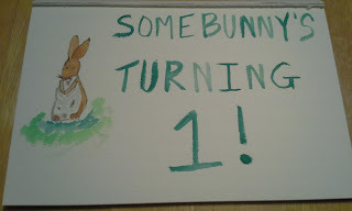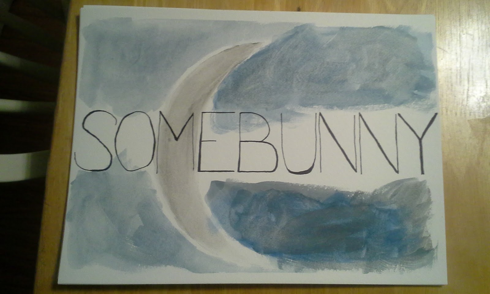 This next piece is a practice painting for Samwise's first birthday coming up in a couple months. He has a lovie blanket with Nutbrown Hare from the kids' book Guess How Much I Love You, and since that's the thing he loves most (aside from his mom and our cat Pumpkin), we're going to theme his party around the book. (I used a page from one of the Guess How Much I Love You books as a model for the Nutbrown Hare here and in the later painting.)