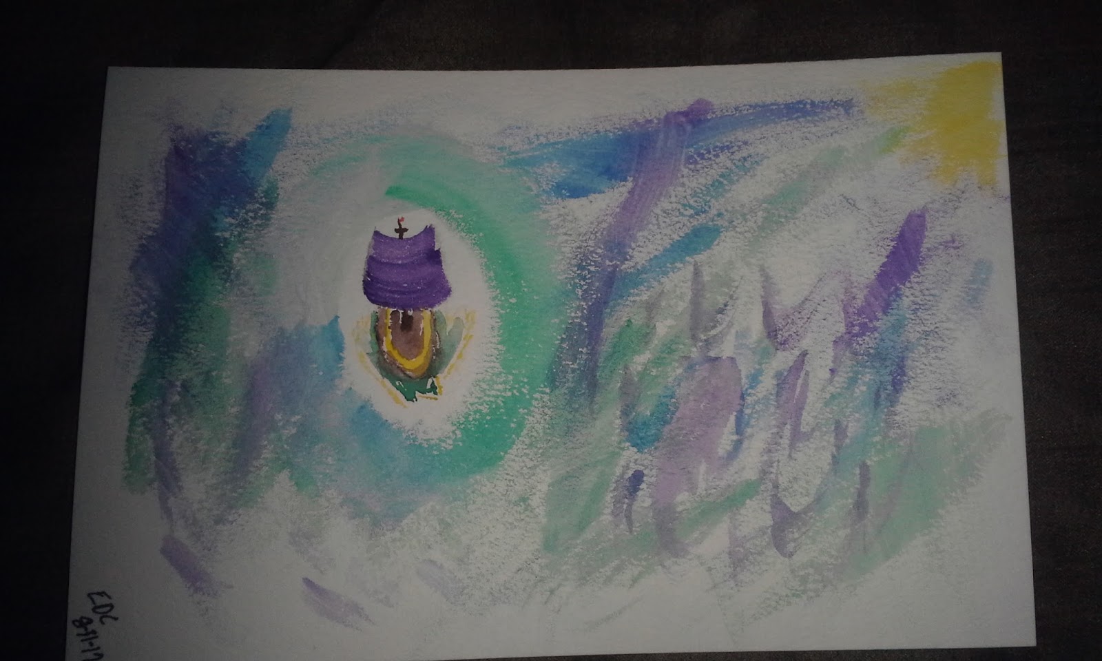 This painting is a fan art attempt at the painting from the beginning of The Voyage of the Dawn Treader. I'm fairly pleased with the way it turned out, but I think I'll try it again with more wet on wet technique.