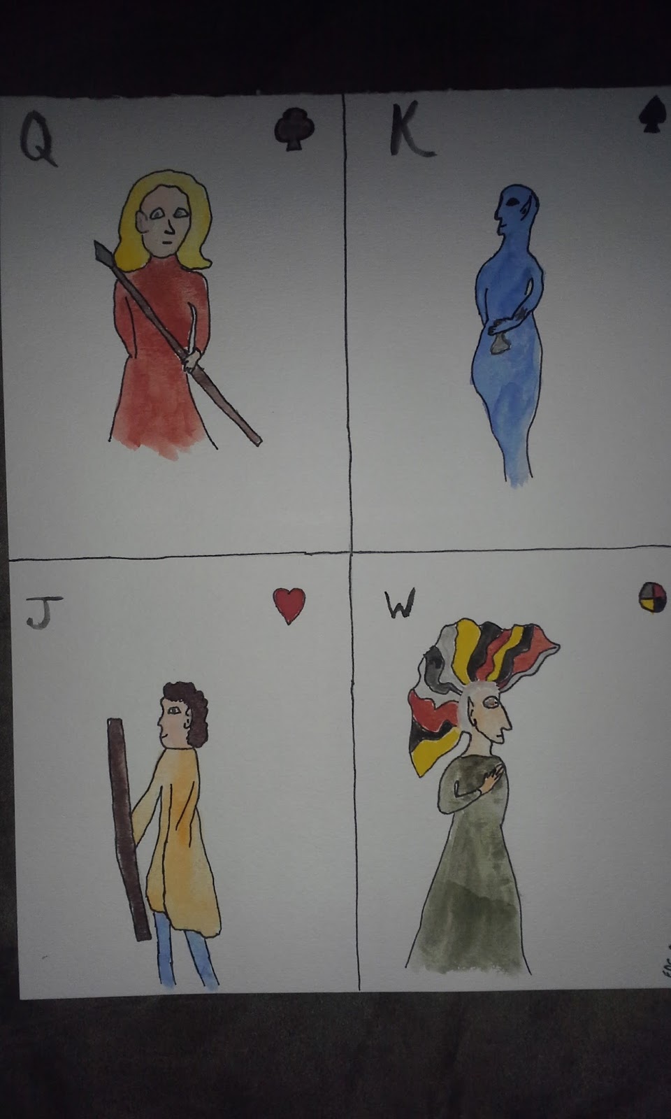 Is it still fan art if the characters are your own? I liked the idea of seeing some of the Albion Apparent characters as playing cards, so here are Bryn, Mortimer, Merlin, and Robin in some basic playing card styles.