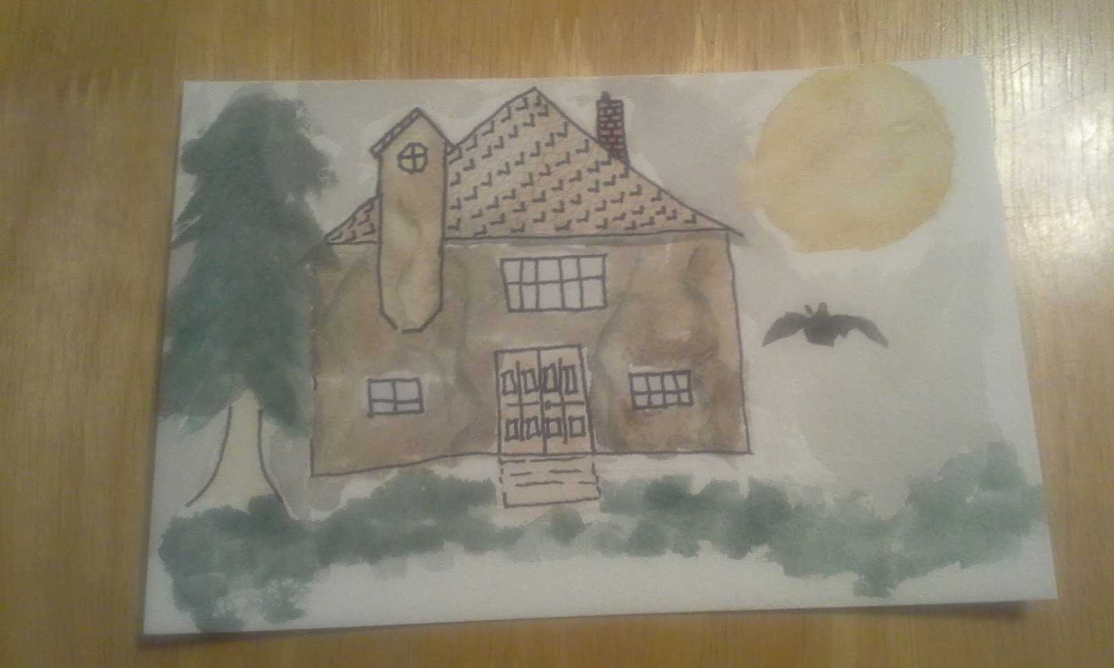 This is a haunted house postcard I'll be sending out later this week to a friend who really gets into the Halloween spirit. I'm pleased with how the colors turned out, and it's encouraged me to try mixing my colors more when I paint.