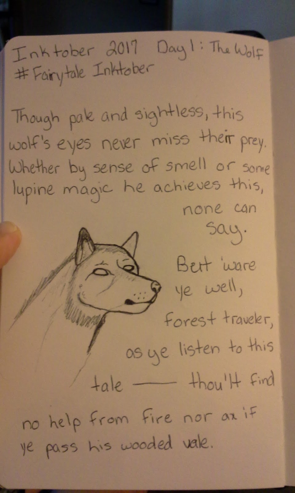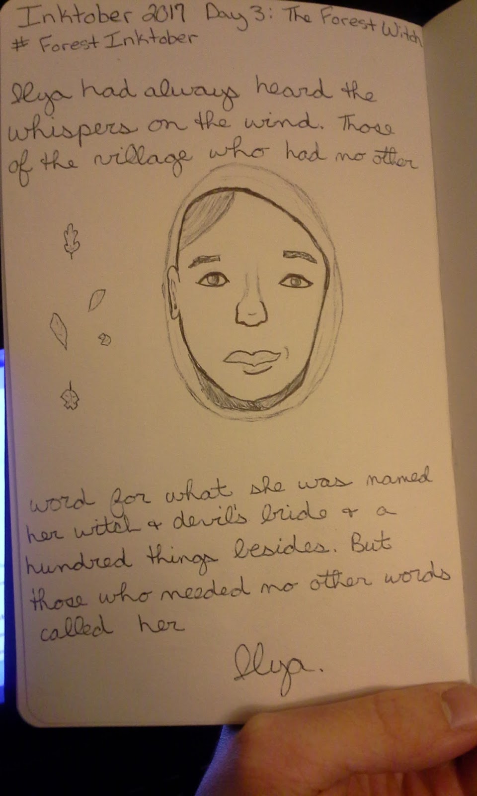 This is what Inktober is for me this year (more Inktober drawings below). I've been drawing and sketching more this year, but doing an intentional, month-long challenge like this is something I've only done with NaNoWriMo before (about which more later). Trying something new -- whether it's within your typical art form or a new one -- is a good way to stretch your creative muscles and stir the waters in your creative bucket.