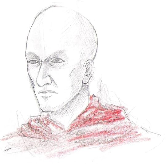 This is a fan art piece of Pryrates, the red priest and secondary villain of Tad William's original Osten Ard trilogy, Memory, Sorrow, and Thorn. I still suck at trying to get arms to look natural in perspective like this, but I like the effect of the eyes and nose being so densely painted compared to the paleness of the face.