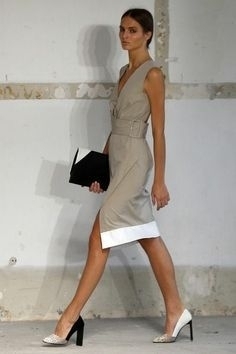 It’s another awesome option for the office with little effort and big results! It’s more popularly known for weekend wear to the Hamptons or the beach but the oxford has reinvented itself with just a change of fabrication to have a more fitted and tailored look; great for the office. Pair it with a blazer or a great necklace and pointy flats or go the other route and wear a great espadrille wedge and roll up the sleeves a little to have some fun with this flirty casual turned corporate twister. Make sure to keep the dress AT or BELOW knee length to stay office appropriate.
