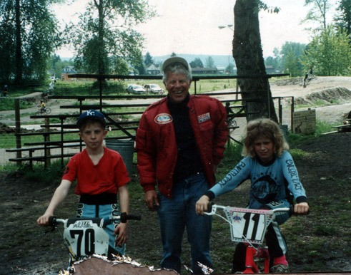Initially my brother and I were just normal kids on junky bikes riding around the neighborhood with other kids. We lived about 5 miles from a bmx track, so it was easy to ride down there. Of course our parents would watch us, picking us up when we fell. Seemed like a pretty mellow way to get exercise and have fun. Think the dog came too! My dad took over coaching us when we were a few years into it, going every day.