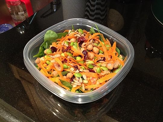 We're loving the bright colors and fresh flavors of this hearty salad, which features edamame, garbanzo beans, baby spinach, shredded carrots, dried cranberries, sunflower seeds, and a light lemon vinaigrette.