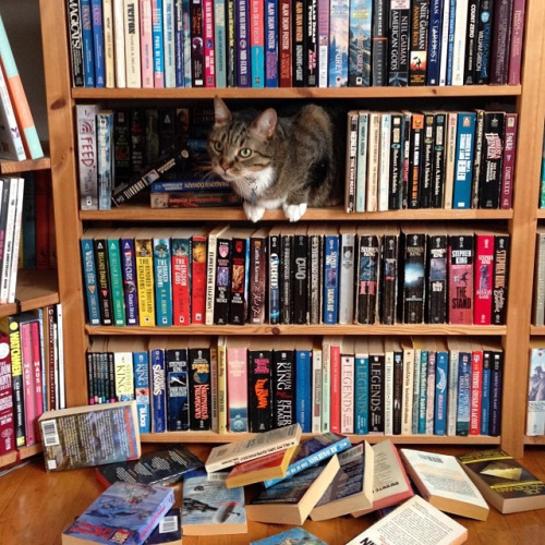 duckduckbooks: Bookshelf cat strikes again by mcwetboy on...