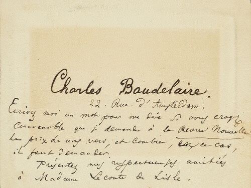 The only manuscript proving epistolary exchange between Baudelaire and Leconte de Lisle.