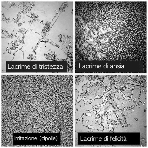 Ecco come appaiono le nostre lacrime al microscopio: ogni tipologia contiene diverse molecole, che le conferiscono un particolare aspetto.