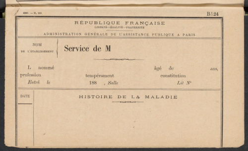 The manuscript of Paul Verlaine’s Amour is written on the backs of medical forms labeled “Histoire de la Maladie”.