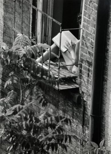 André Kertész, Greenwich Village, New York (woman reading in fire escape window), 1963