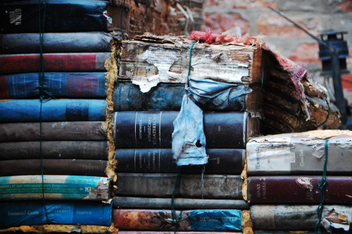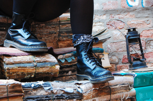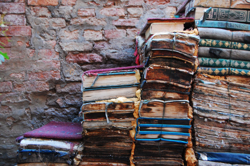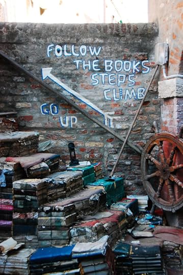 In the back area there is a staircase of old books that have been damaged by flooding and painted phrases all over the brick walls. While it was somewhat sad to see all those books ruined it was incredible to see that they’d done something fun with them instead...