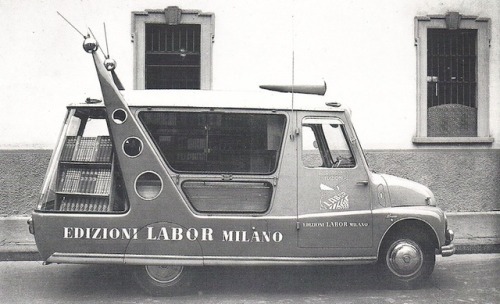 Based on a chassis of Fiat 615, this cosmic vehicle was used in 1950s as a mobile bookshop by a Milan-based publishing house Edizioni Labor More