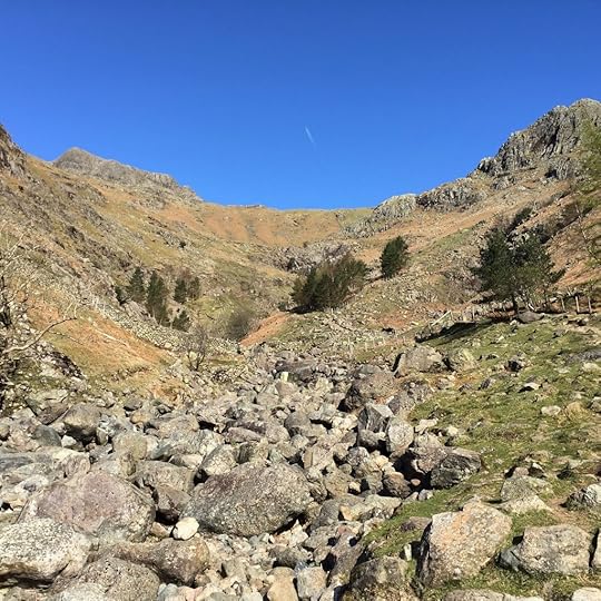 They’d taken the path directly behind the back of the Sticklebarn pub, where Paul worked part-time at the weekends, past the gold blaze of larches in Raven Crag, and now they were heading along the ridge, with Dungeon Ghyll roaring below them.