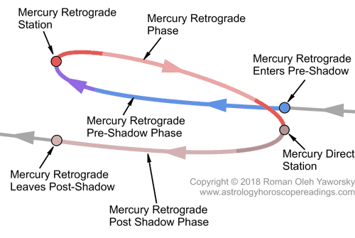 Szeretnék eloszlatni egy közkeletű félreértelmezést a retrográd Merkúrral kapcsolatban, ami mostanában valahogyan teret nyert a bulvár asztrológiában. Arról van szó, hogy a tulajdonképpeni retrográd szakasz (most épp márc.16-26 között) előtti (most épp márc.1-15-ig) és utáni (most márc.27- ápr.19.) szakaszt még hozzászámolják a retrográdsághoz és pre- ill.post--retrográd szakaszként emlegetik.
