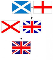 Elnevezése: Union Jack. A Szent Görgy kereszt mögött egy Szent András és egy Szent Patrik - kereszt található. A kék alap Skócia jelképe. A vörös kereszt Anglia, a Vörös andráskereszt Irország jelképe (ez utóbbi ugyan már jó ideje független saját zászlóval, de a motívuma megmaradt an angol zászlón).